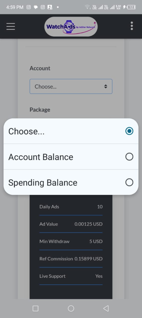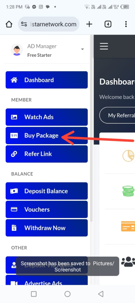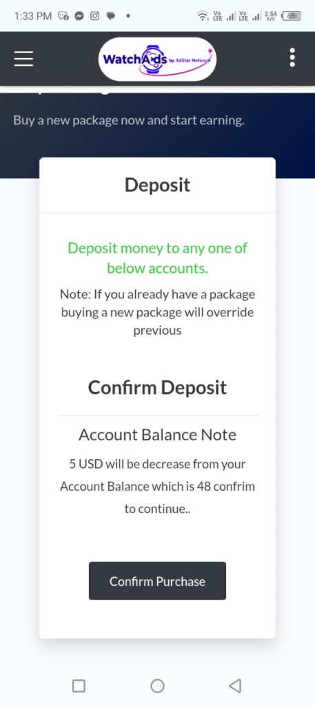 Click On Buy Package , Select Basic Package or any Other Standard – Business – Gold – Or Premium Package , According to Your Deposited Balance and Submit To Activate Instantly.