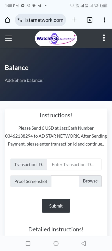 Account Title AD STAR NETWORK Bank Name Habib Bank Limited (HBL)
